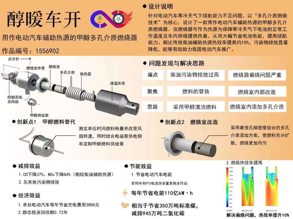 “醇暖車(chē)開(kāi)”一種用作電動(dòng)汽車(chē)輔助熱源的甲醇多孔介質(zhì)燃燒器